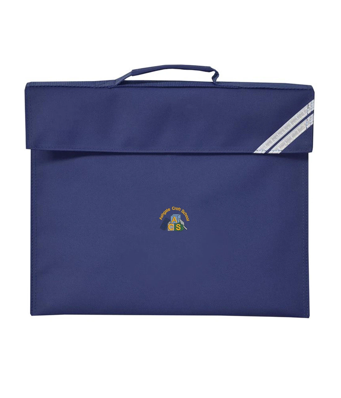 The Classic style bookbag made in 450D fabric with reflective strips for safety. The bag is built to last with rounded corners for safety and durability. Size: 10" X 14.5"