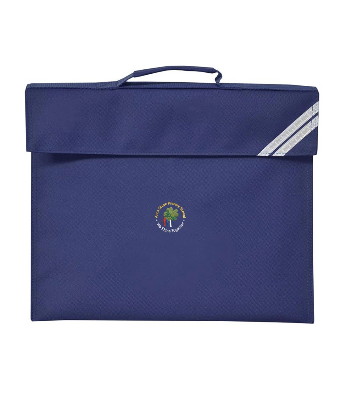 The Classic style bookbag made in 450D fabric with reflective strips for safety. The bag is built to last with rounded corners for safety and durability. Size: 10" X 14.5"
